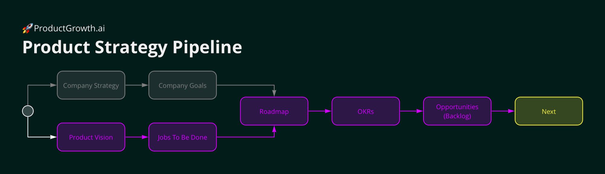 Neste playbook compartilhamos o Pipeline de Estratégia de produto que utilizamos atualmente na 🚀ProductGrowth.ai para definir a Estratégia, o Roadmap, os OKRs de produto e planejar o trimestre.